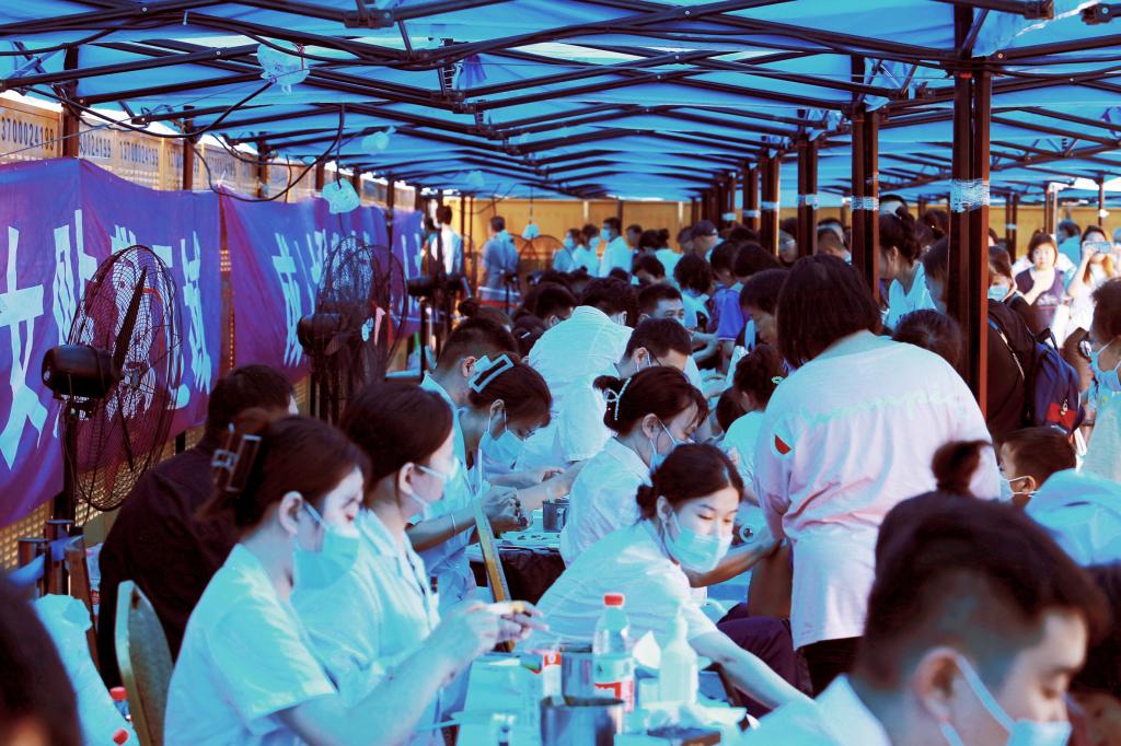 随着第一批“贴粉儿”的到来,“大型贴敷现场见面会”正式拉开帷幕。等待贴敷“三伏贴”的人群中男女老幼均有,越来越多的年轻人也扎堆排队抢贴“头贴”。他们中有的是“老熟人”,带着家人前来,有的是陌生面孔,排在队伍中等待着三伏贴敷第一帖。